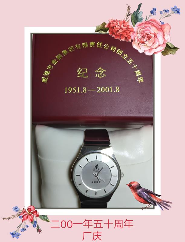 記憶三:鍍金屬相牌和情侶手表——2001年金猴創(chuàng)立50周年時企業(yè)為職工定制的署名鍍金屬相牌和情侶手表。在過去的十年里,企業(yè)得到了高速發(fā)展,由一個名不見經傳的單一制鞋小廠,發(fā)展成為家喻戶曉涉足多個領域的集團公司。隨著“穿金猴皮鞋,走金光大道”的廣告語通過中央電視臺黃金時段傳遍大江南北,北京、太原、沈陽、濟南等全國各地的百貨大樓皮鞋專柜前購買金猴皮鞋的人接踵而至,人山人海,互相簇擁,只為了能夠買到一雙金猴皮鞋。商場的采購人員提著現(xiàn)金開車到金猴排隊提貨,有的竟排半個月的隊才能提到現(xiàn)貨。主業(yè)繁榮為企業(yè)發(fā)展打下了堅實的物質基礎,這期間企業(yè)的名稱由“威海市皮鞋工業(yè)集團公司”改為“威海市金猴集團公司”,先后合并了“威海市皮件二廠”、“威海市皮件一廠”,投資成立了“金猴集團進出口貿易公司”、“金猴集團房地產開發(fā)公司”等子公司。1998年,企業(yè)名稱改為“威海市金猴集團有限責任公司”,實施了股份制改造,發(fā)生了脫胎換骨的變化,干部職工人人持股,干勁空前高漲。每一次企業(yè)名稱的改變,都見證了企業(yè)在發(fā)展的過程中登上了一個新臺階。因此,2001年為慶祝金猴集團創(chuàng)立五十周年,鼓勵廣大干部職工干事創(chuàng)業(yè)積極性,集團領導決定給每位在職和離退休的干部職工私人定制一塊署名鍍金屬相牌,并配發(fā)一對情侶手表,以表達對金猴集團創(chuàng)立五十周年的永久紀念。
