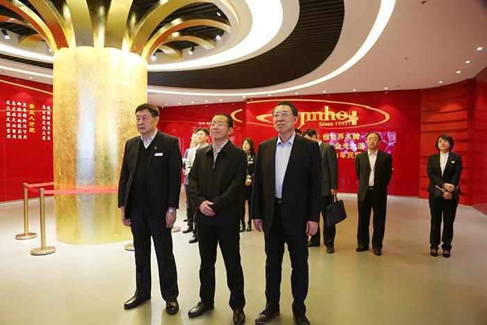 傅書記實地參觀了金猴集團展陳館,詳細了解公司生產經營、轉型升級、軍民融合及展陳館建設情況,對公司的技術研發(fā)、品牌建設、軍民融合工作及金猴皮鞋、皮具的優(yōu)異品質給予了充分肯定和高度贊揚。