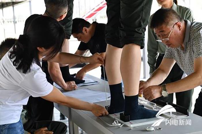 “剛開(kāi)始她們集結(jié)的時(shí)候,初期量一遍,然后訓(xùn)練一段時(shí)間,腿腫了,得再量一遍,再過(guò)一段時(shí)間,腿又消腫了,又量了一遍,然后正式上閱兵場(chǎng)之前,我們又量了一遍,所以一共是4遍?!倍麻L(zhǎng)柳富林說(shuō),企業(yè)要給每個(gè)人做四雙不同尺碼的鞋,才能保證受閱隊(duì)員在每一個(gè)訓(xùn)練階段都穿上了合腿合腳的鞋子。