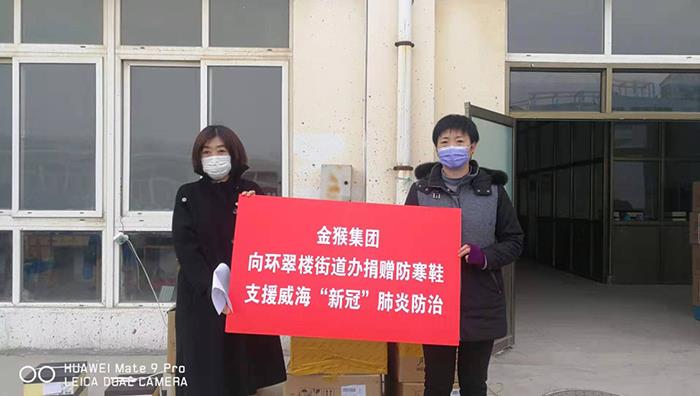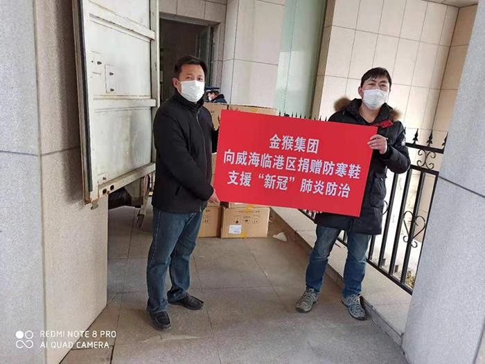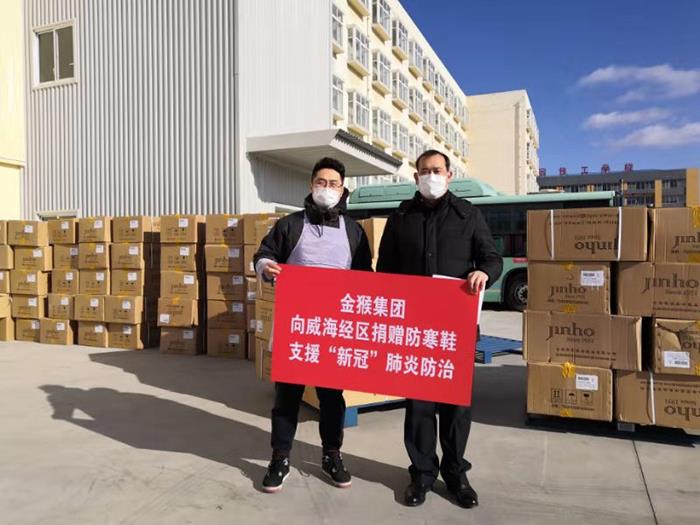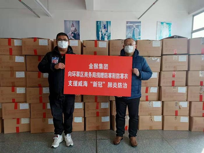2月3日至今先后向威海市環(huán)翠區(qū)、高區(qū)、經(jīng)區(qū)、臨港區(qū)、文登區(qū)、榮成市、乳山市、南海新區(qū)捐贈防寒服15000多件、防寒靴20000多雙,價值達(dá)1500多萬元,把溫暖送給廣大戶外一線防疫人員。