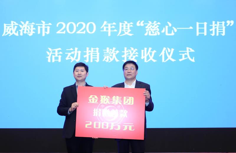 頒獎典禮結(jié)束后,威海市2020年度“慈心一日捐”活動捐款儀式舉行,集團紀(jì)委書記、工會主席鄒曉伍代表公司向市慈善總會捐款200萬元。