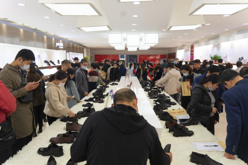 上午九點(diǎn),選樣活動(dòng)正式開(kāi)始。經(jīng)銷(xiāo)商們一走進(jìn)大廳,目光隨即被頗具特色的展廳布置所吸引,大廳中心分三部分陳列,包括男鞋區(qū)、女鞋區(qū)和陳列展示區(qū),柔和的燈光讓整個(gè)大廳顯得更加美觀溫馨。此次新品發(fā)布會(huì)上春季新款男鞋和女鞋樣品豐富、時(shí)尚新穎、色彩多樣,無(wú)論是女士通勤、休閑款,還是男士商務(wù)、休閑款,應(yīng)有盡有。其中,老爹鞋、小白鞋、樂(lè)福鞋、飛織鞋等休閑款式面向年輕顧客群,滿足了經(jīng)銷(xiāo)商多方位的選擇需求。