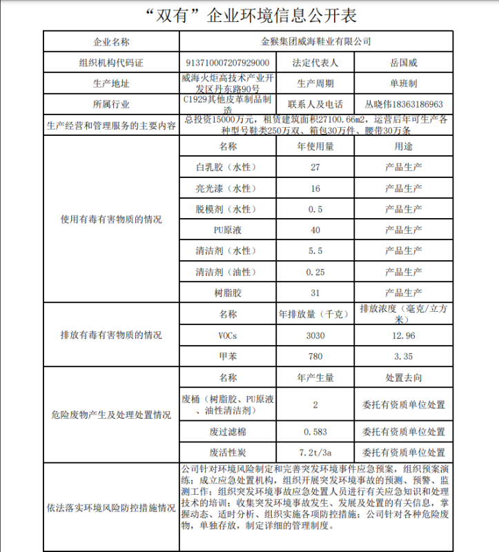 “雙有”企業(yè)環(huán)境信息公開(kāi)表