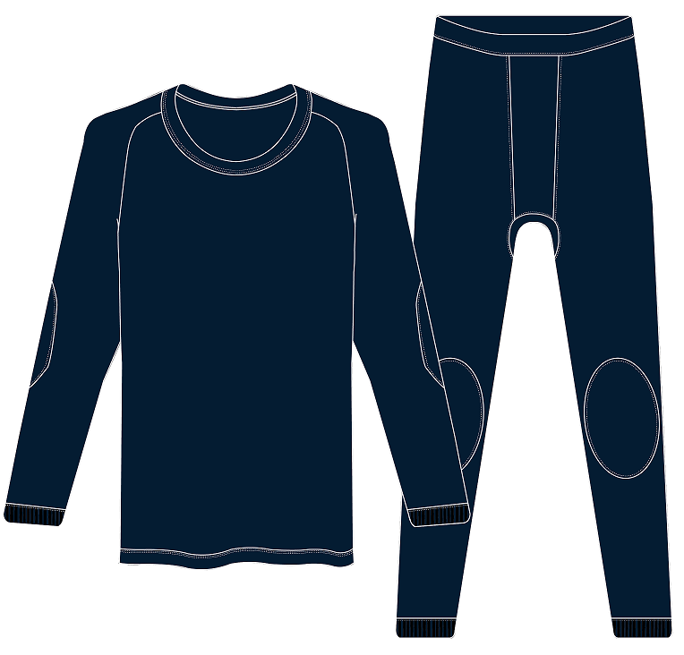 整體顏色為藏青色,款式為貼身穿著的內(nèi)衣式,分為上下衣結(jié)構(gòu)。采用具有阻燃、防靜電、舒適透氣等功能的針織面料。