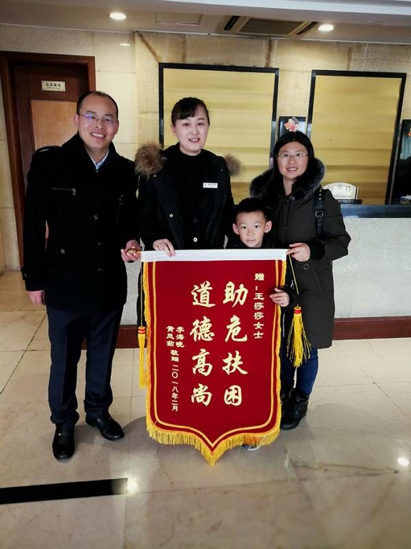 2月8日,一對(duì)年輕父母給金猴酒店送來(lái)了一面錦旗和水果,對(duì)酒店員工王莎莎助人為樂的行為表達(dá)深深的敬意和謝意,并期望金猴酒店能對(duì)王莎莎這樣優(yōu)秀的員工給予表?yè)P(yáng),使她這種正能量不斷傳遞下去。